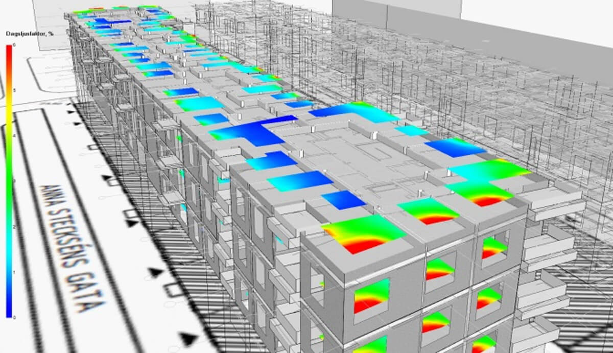 Daylight factors are simulated based on the geometry of the IDA ICE model and the Radiance simulation engine